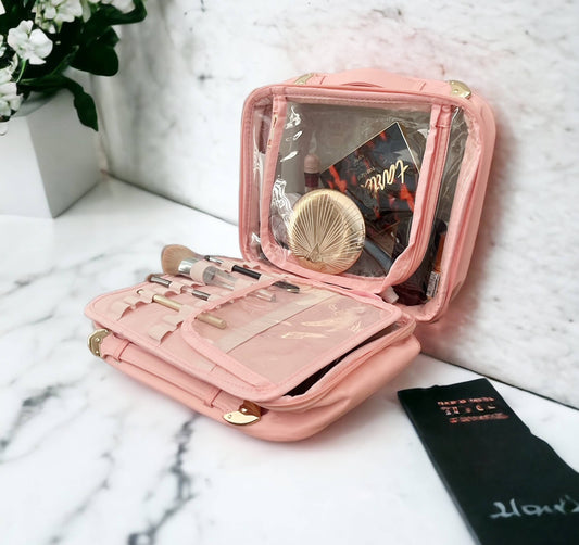 SUBTLY CHECKED COSMETIC BAG SET (COGNAC)
