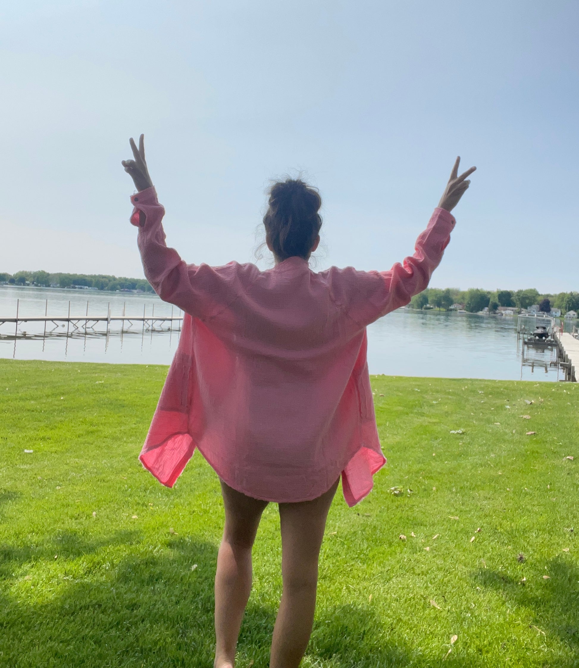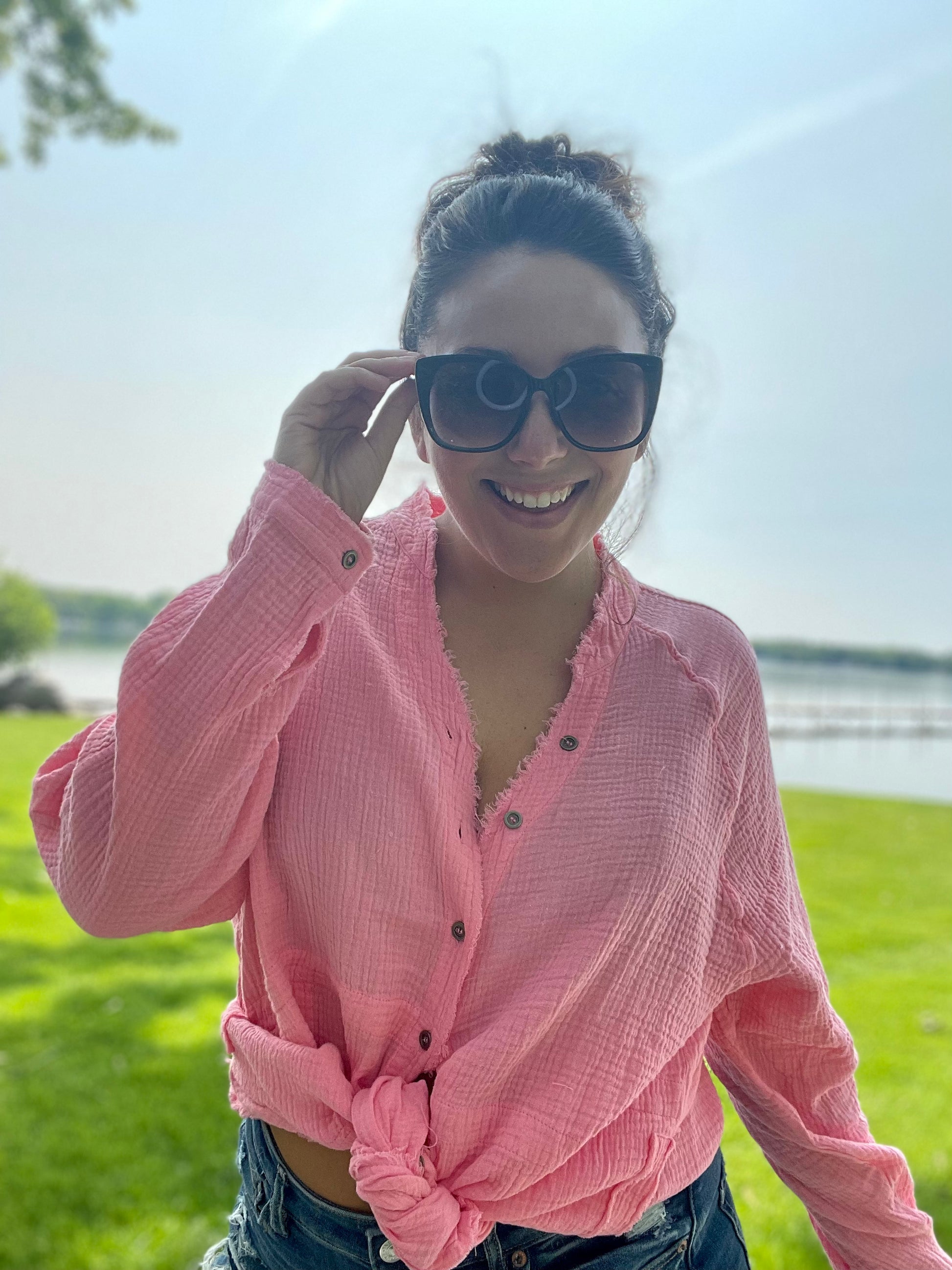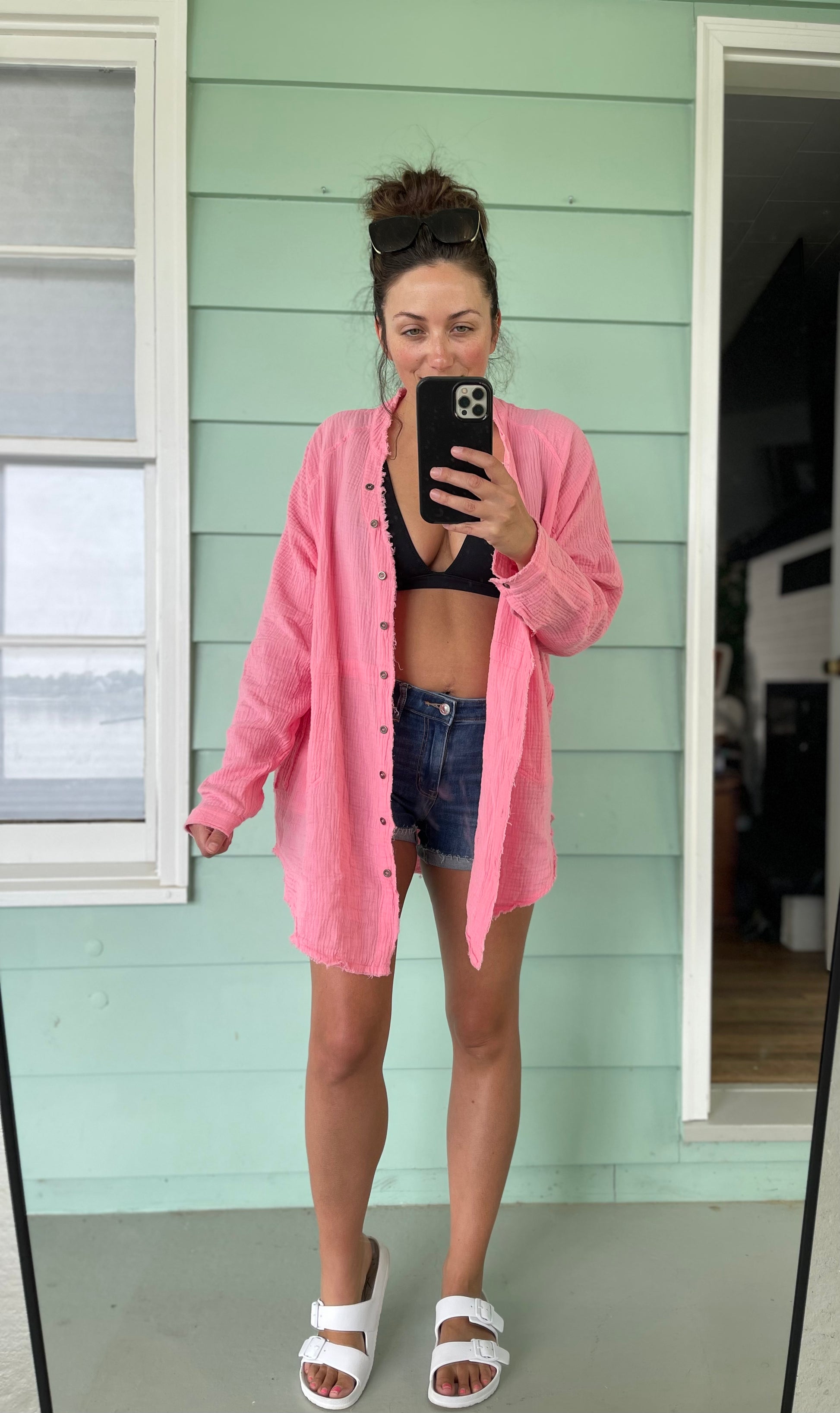 Its relaxed fit makes it ideal for all-day wear, while the button-up front and collared neckline add a touch of sophistication to the design. Whether you're running errands or meeting up with friends, this shirt is sure to become a staple in your wardrobe.